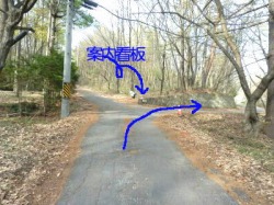 ほんの 50 m ほど行くと、また看板が設置してあります。ここを左折します。 |